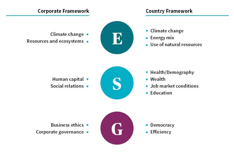 Key dimensions of our ESG assessment of corporations and countries